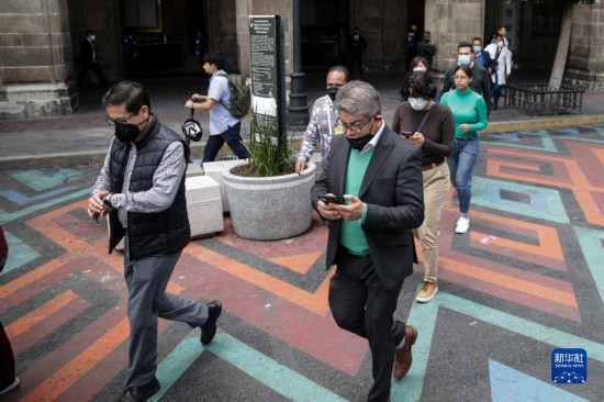 9月19日,在墨西哥首都墨西哥城,人们听到地震警报后疏散到室外。新华社发(弗朗西斯科·卡涅多摄)