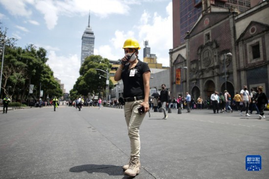 9月19日,在墨西哥首都墨西哥城,一名民防人员在街头工作。新华社发(弗朗西斯科·卡涅多摄)
