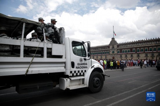 9月19日,在墨西哥首都墨西哥城,国民警卫队在街头执勤。新华社发(弗朗西斯科·卡涅多摄)