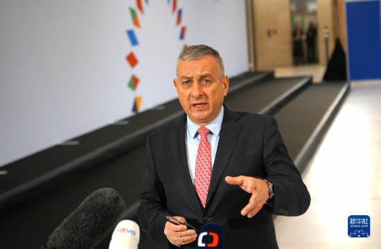 10月12日,在捷克首都布拉格,欧盟轮值主席国捷克工业和贸易部长约瑟夫·西克拉在欧盟能源部长非正式会议前对记者讲话。