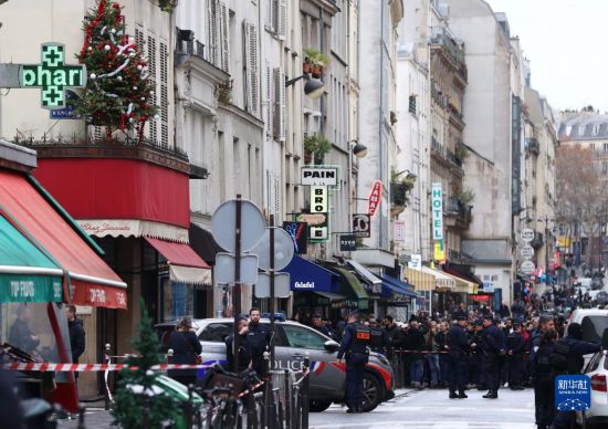 12月23日,警察在法国巴黎发生枪击事件的街口警戒。新华社记者 高静 摄
