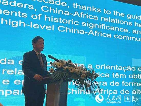 安哥拉驻华大使若昂·萨尔瓦多·多斯·桑托斯·内图致辞。人民网 武妍虹摄
