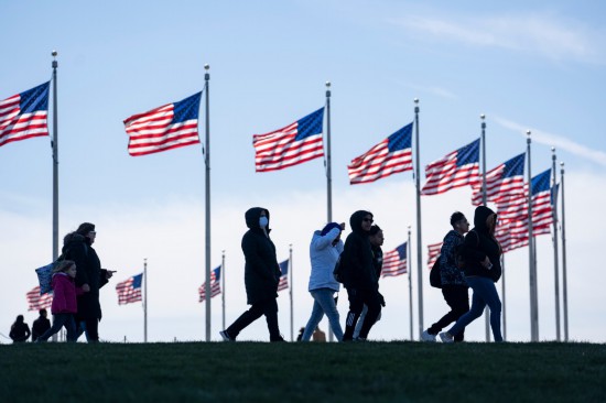2022年3月29日,行人走在美国首都华盛顿的国家广场。新华社记者刘杰摄