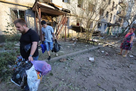 2022年6月20日,顿涅茨克当地居民从被损坏的建筑撤离。新华社发(维克托摄)