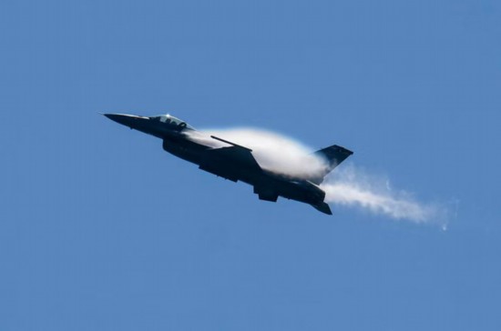 2017年9月30日,一架F-16战机参加在美国加利福尼亚州奥兰治县举行的亨廷顿海滩飞行表演。新华社发(赵汉荣摄)