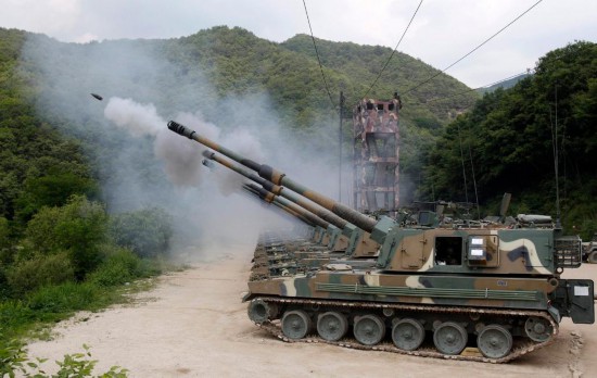 这是2012年6月19日在韩美军事演习媒体开放日上拍摄的参演K-9自行火炮。新华社/路透