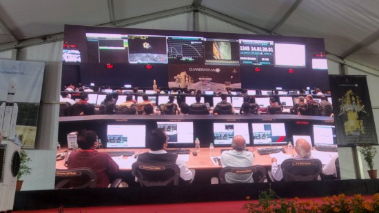 8月23日,在印度班加罗尔,一处大屏幕播放印度月球探测器相关直播画面。新华社发