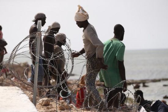 7月26日,在突尼斯与利比亚边境的艾季迪尔角,众多移民滞留在地中海海岸边。新华社发(哈姆扎·图尔基亚摄)