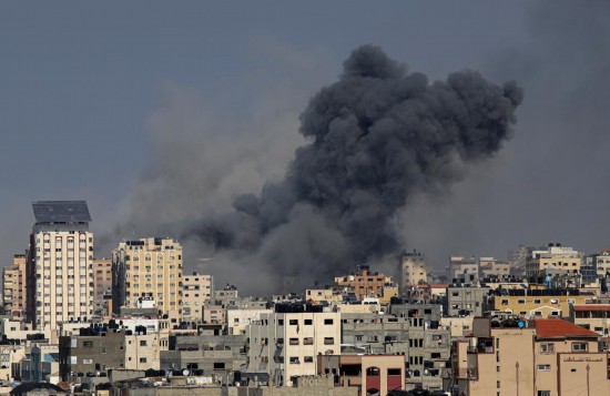 10月12日,加沙城的建筑遭以色列军队空袭后升起浓烟。新华社发(里泽克·阿卜杜勒贾瓦德摄)