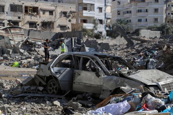 这是10月12日在加沙城拍摄的一辆被以色列军队空袭炸毁的汽车。新华社发(里泽克·阿卜杜勒贾瓦德摄)