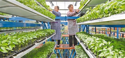 近年来,江西省赣州市于都县以“数字化农业+标准化生产”模式建设育秧中心。育秧中心采用物联网系统进行整体控制,所有设施均纳入一张网管理,立体循环运动式育苗设备可缩短育秧周期5天,为农业生产尤其是粮食生产工作节约用工成本,提高土地利用率和秧苗存活率,促进农民增收。图为11月19日,罗江镇数字智慧育秧中心,工人在打理立体循环运动式育苗架上培育的蔬菜秧苗。
