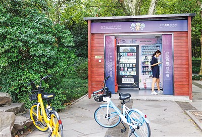 游客在杭州西湖景区亚运会主题便利店购买商品。 |