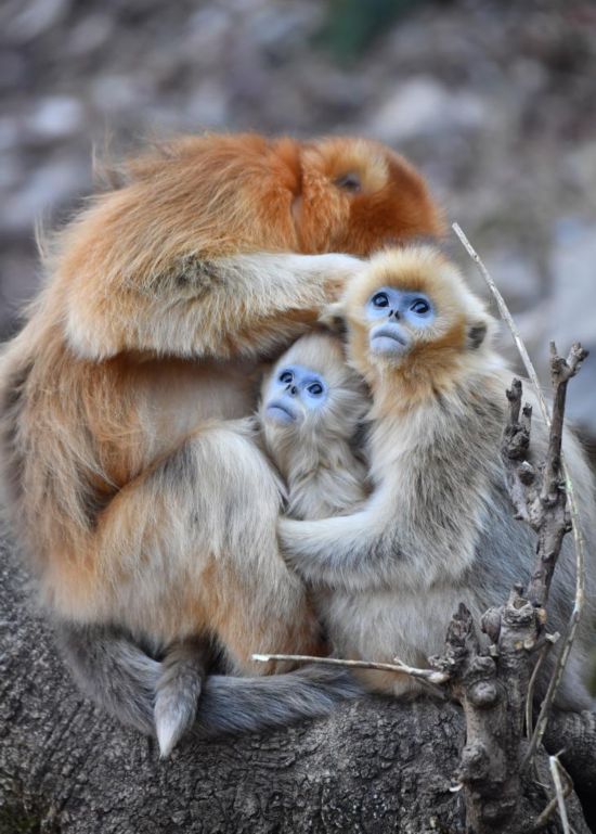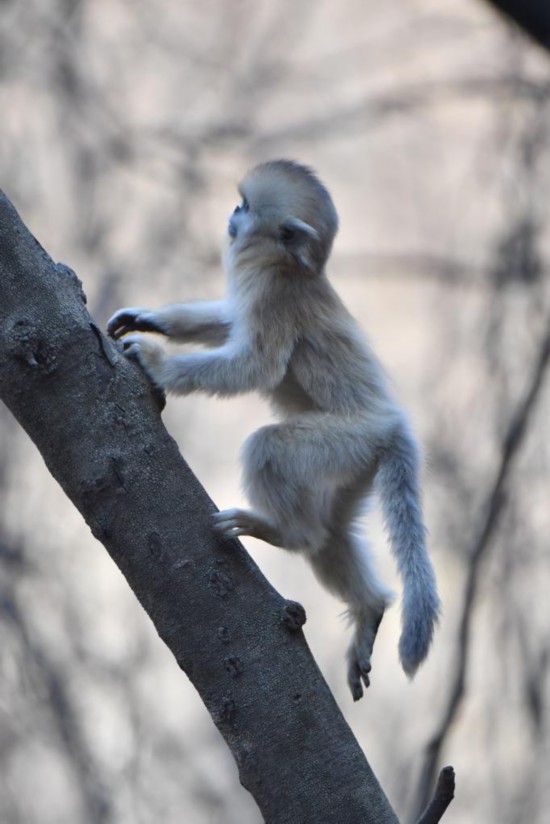 12月11日,在陕西周至国家级自然保护区玉皇庙金丝猴监测基地,金丝猴婴幼猴在活动。新华社记者邵瑞 摄