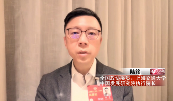 全国政协委员、上海交通大学中国发展研究院执行院长陆铭。访谈截图