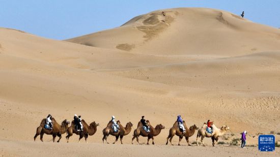 近年来,内蒙古鄂尔多斯市杭锦旗境内的库布其沙漠经过多年治理,自然环境持续好转,实现了从“沙进人退”到“绿进沙退”的历史性转变,吸引游客前来赏景游玩。