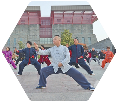 安徽省亳州市蒙城县博物馆广场上,市民在打太极拳。 |