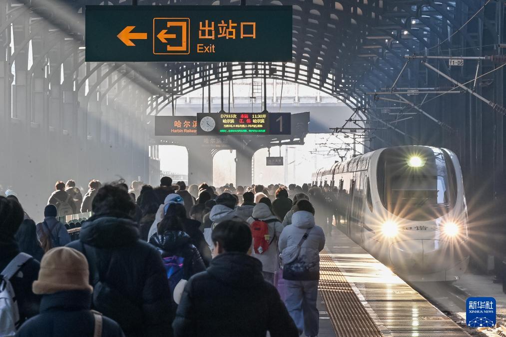 1月3日,旅客在哈尔滨火车站乘车出行。新华社发(原勇摄)