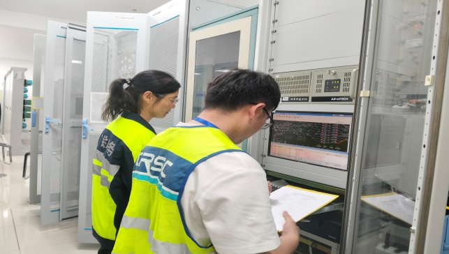 图为邢卫姑(左一)在三亚站进行系统平推检查