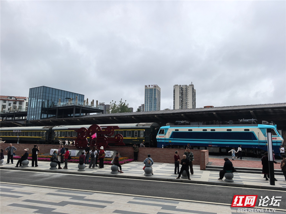 9月27日,众多市民与游客走进怀化图博馆后方的火车馆,在此驻足留影,感受几十年来怀化发展的沧桑变迁。