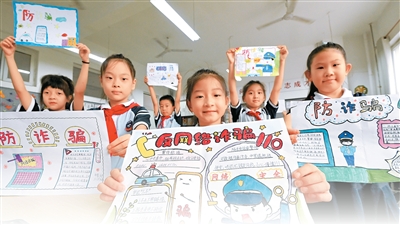 河北省邯郸市复兴区阳春小学的学生们展示网络安全主题手抄报。 |