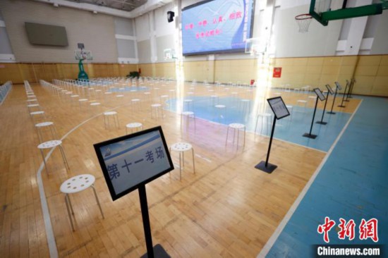 图为北京市东直门中学高考考点内的候考区。 中新社记者 富田 摄