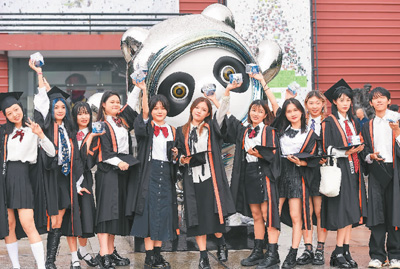 6月8日,广州美术学院举行毕业典礼,近1700名毕业生每人都收到了学校赠送的冰墩墩,在离校前圆了“人手一墩”的梦想。2022年北京冬奥会吉祥物冰墩墩出自该校视觉艺术设计学院设计团队之手,母校这份毕业礼物也给毕业生留下了满满的自豪感。图为广州美院毕业生捧着冰墩墩在校园内拍照留念。