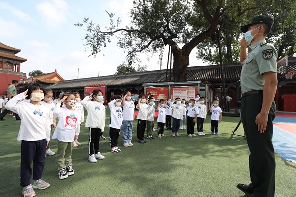 在东城区特殊教育学校,受邀而来的武警北京支队战士结合军人生涯的亲身经历,向师生们宣讲“国旗的精神”,香山革命纪念馆讲解员季雯怡则以“一物一故事”的讲述形式,娓娓道来革命文物背后的厚重历史和动人事迹。