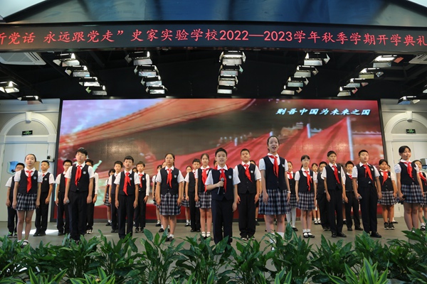 在史家实验学校的开学典礼上,特别设置了“厚植家国情 实验少年行”板块。孩子们用各式各样的服务性学习活动,展示自己身体力行践行“中国精神、传承有我”的新时代少年风貌和不以善小而不为、心系家国的新时代少年应有的行动力。
