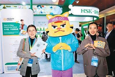 HSK GO的萌系代言人、戴着紫色发带的黄色小老虎也吸引了不少参观者驻足。作为一款“会思考”的中文学习软件,它用算法为每位学习者量身定制专属路径,让其在闯关练习中不知不觉掌握中文语音、字形和语法。它的“自适应大脑”,能通过计算词语间的关联度,让学习效率翻倍。而全新的3.0版HSK考试大纲,从原先的6个考试等级升级为9个,新考纲的前两级能直接在HSK GO软件中在线考试,通过后证书受官方认可,省去线下考试的奔波和成本。