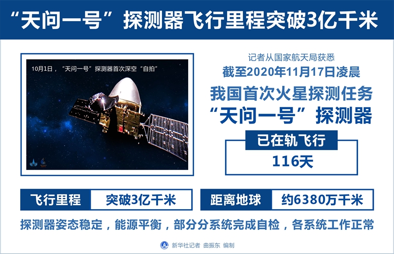 “天问一号”探测器飞行里程突破3亿千米