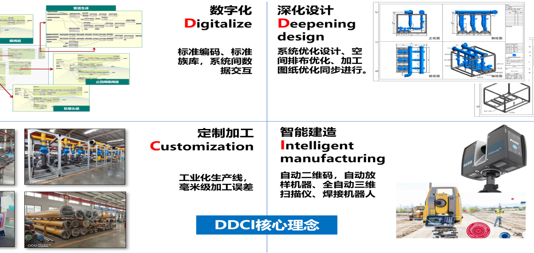 据记者现场了解,DDCI施工技术体系是一套施工工业化流程体系,该体系以BIM技术为载体,深化设计为前提,预制装配为手段,其核心理念即数字化(Digitalize)、深化设计(Deepening design)、定制加工(Customization)、智能建造(Intelligent manufacturing)。中建八局四公司将DDCI施工技术体系与机房施工相结合,形成了DDCI装配式机房关键施工建造技术,做到机房施工的建筑工业化。