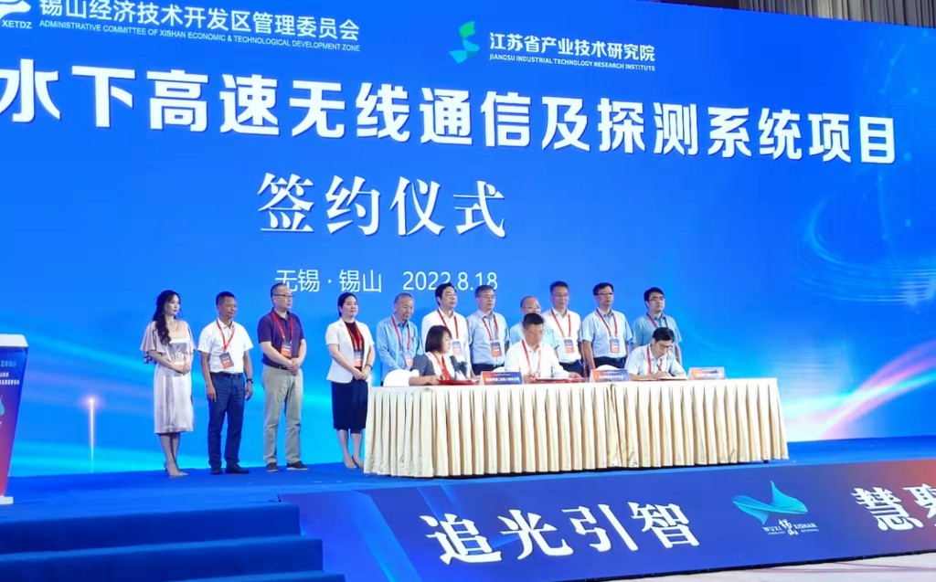 在8月18日“追光引智慧聚锡山”2022锡山光谷-智能通信与光电技术发展荟智论坛上,无锡锡山经济技术开发区与北方科技科创中心、君霖科技共建的“宛山湖智慧海洋标准创新中心”正式启动,同时举行江苏省产业技术研究院、君霖科技“水下高速无线通信及探测系统项目”签约仪式,并聘请一批新兴产业发展专家顾问。