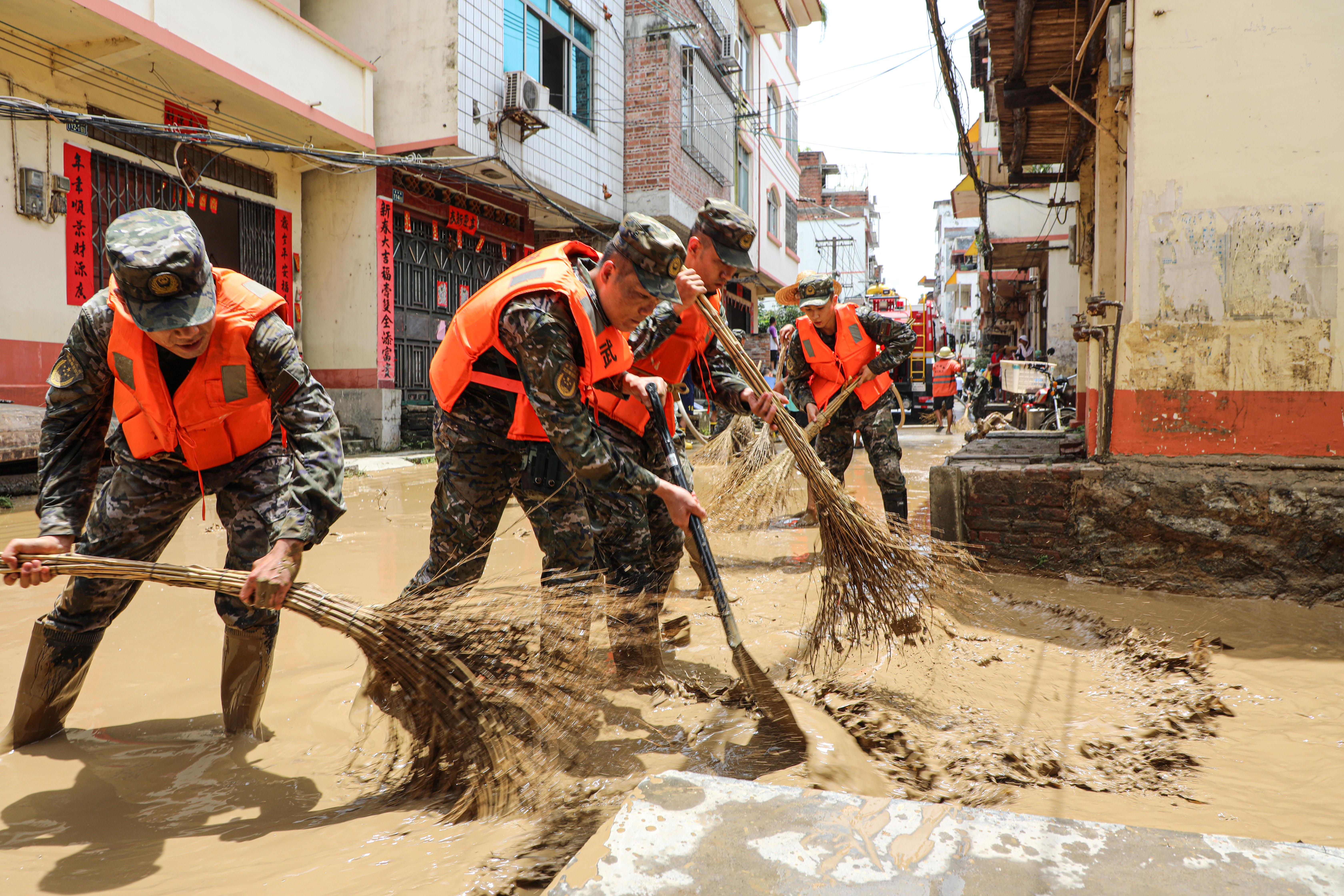 广西梧州:洪水退去 武警官兵助力清淤排险恢复秩序
