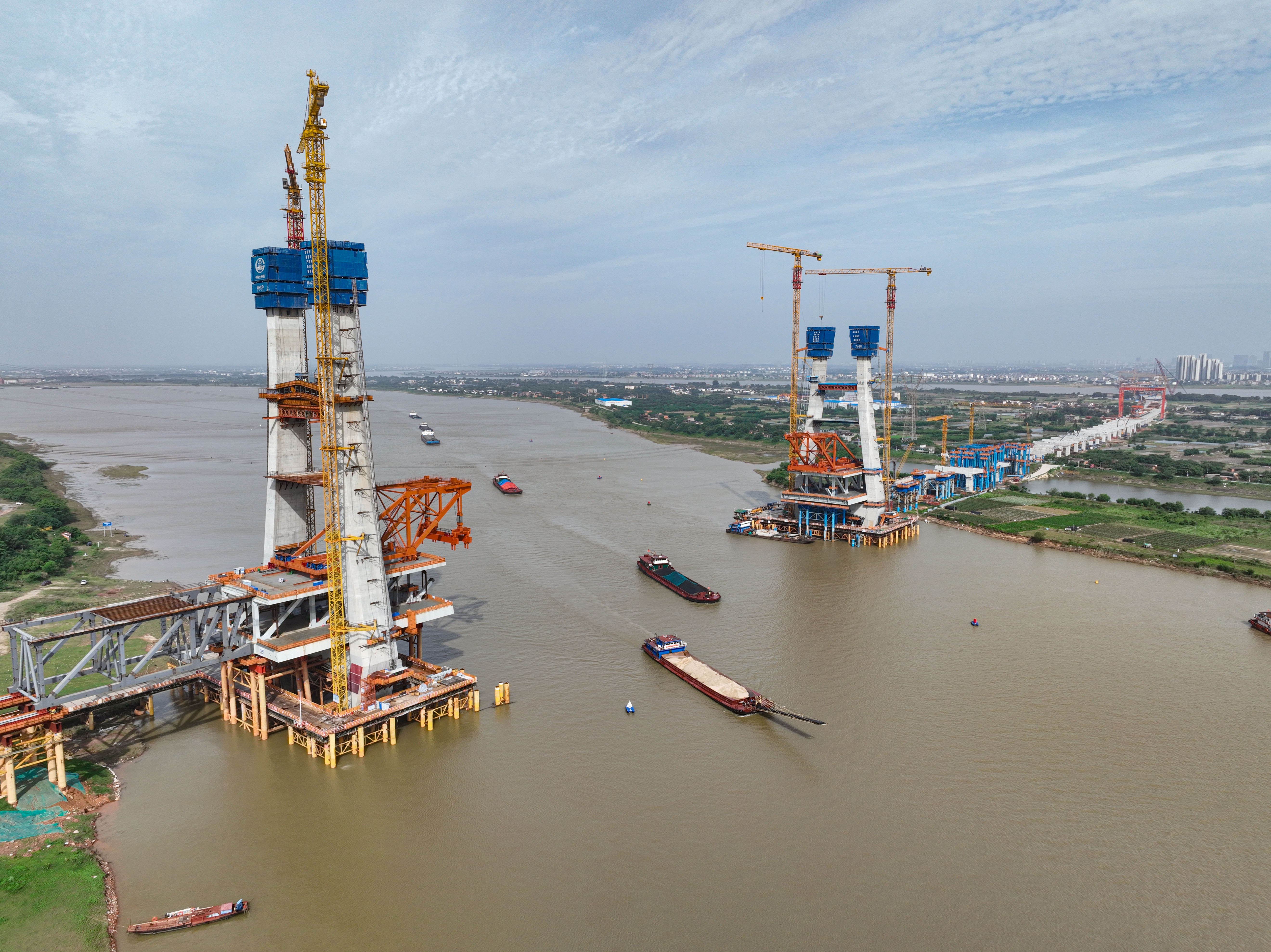 昌九高铁:南昌扬子洲赣江公铁大桥首个主塔中横梁浇筑完成