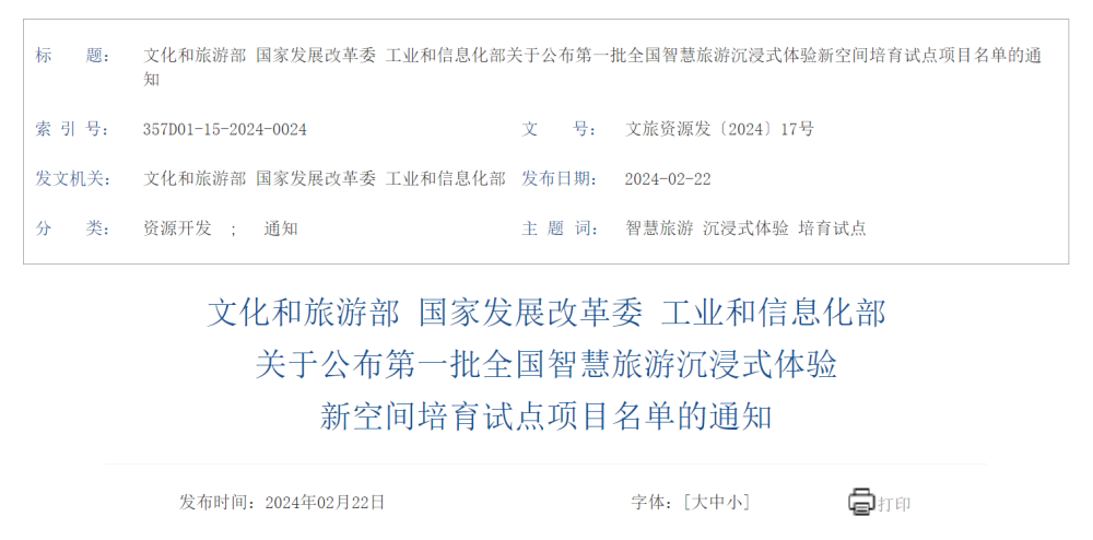 三部门公布第一批全国智慧旅游沉浸式体验新空间培育试点项目名单