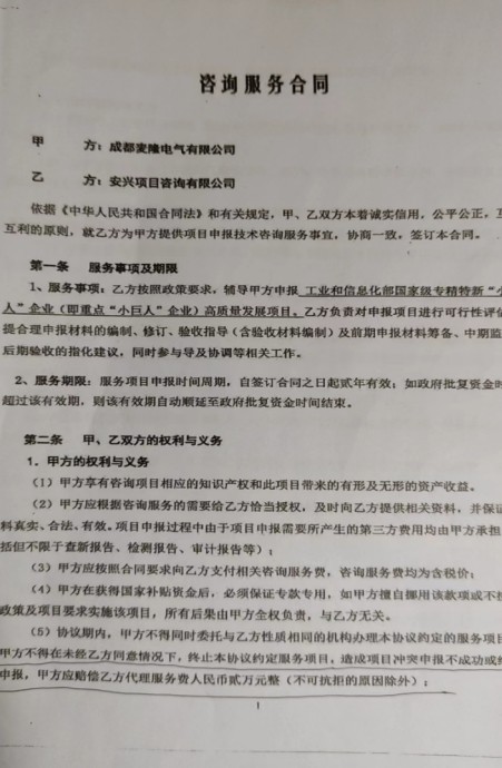 无理拒付咨询费?四川绵阳安兴公司投诉称成都麦隆电气有限公司严重违约