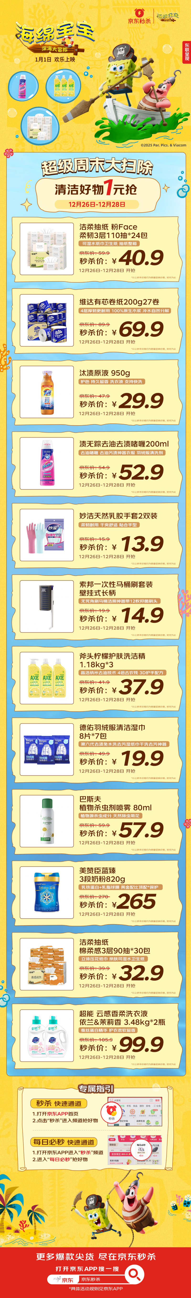 清洁好物1元抢!京东秒杀频道12月26日开启“超级周末大扫除”活动