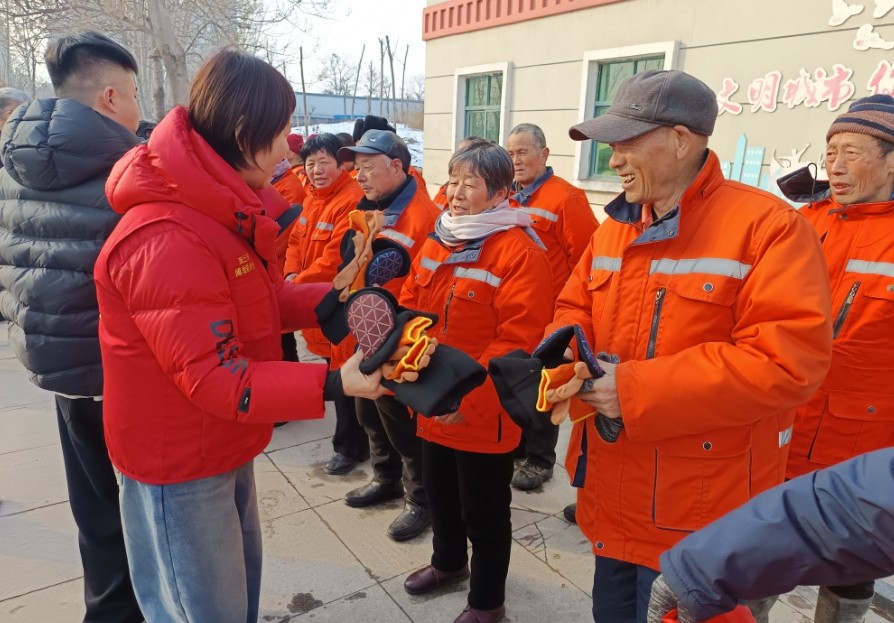 活动现场,商丘市博爱联合会为一线环卫工人送上300套帽子、耳罩、手套“温暖三件套”,用实用的保暖物资为户外作业的他们筑牢防寒屏障,保障其扫雪除冰工作中的身体保暖。商丘市城管局党办、工青妇,商丘市环境卫生事务中心相关领导,及商丘市博爱联合会党支部书记、会长杜全,常务副会长李俊林,副会长王晓凌、王宝立、赵金花等20余名会员共同参与此次慰问,将温暖亲手送到环卫工人手中。
