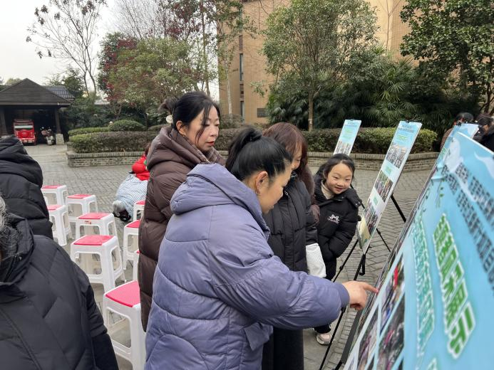 上午九点整,活动正式进入第一阶段——项目总结与分享。项目负责社工冉丹率先登场,两侧图文并茂的展板宛如一轴缓缓展开的时光画卷,直观呈现着焕新计划的每一步足迹。社工通过详实的数据、生动的图片与真挚的讲述,深情回顾了项目启动一年来的点点滴滴:从小区闲置角落的微更新、公共设施的修缮升级,到节日邻里宴、亲子趣味赛等一系列丰富多彩的文化活动,每一个数字背后都凝结着工作人员与居民的汗水智慧,每一张照片都定格了湖畔湾小区从“住有所居”到“居有所乐”的可视化变迁。居民们凝神倾听,不时点头称许,眼神中满是对家园变化的认可与自豪。