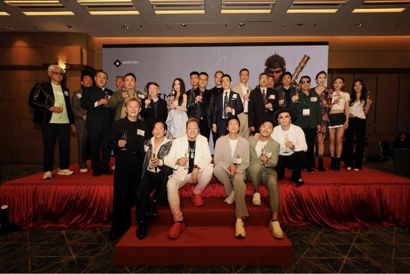 团主席创始人王敬德、释延豹先生、AI Motion执行总裁刘壮、星域集团创始人XING YU GR OUP DR Kervis 苏才育、优势资本吴克忠董事长、赛博宇华控股集团金红祥董事长,主持人 :洪天明、贾可尧,导演:王晶、江道海,艺人:张耀扬、郑浩南、朱永棠、尹扬明、温碧霞、庄思敏、何佩瑜、邵初、杨潮凯、唐嘉麟、及伍韵婷等共同祝酒,发布会圆满落幕。