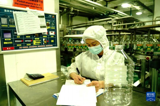 4月22日,在上海嘉里食品工业有限公司的生产车间,操作人员填写空油瓶质量抽检记录。