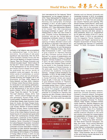 记者了解到,刘浩锋不仅是和学思想体系创始人,也是国际知名艺术家,作家诗人。他在一些跨领域具有非凡的学术成果发现。当今世界正面临宗教文化冲突以及东西文明的激烈冲突,尤其最近欧洲的俄乌战争,导致人们对世界未来与和平发展充满着深切忧虑。刘浩锋认为,所有这些冲突的背后,最深层的还是精神信仰的冲突,以及由此延伸衍化出来的政治经济文化地缘军事冲突。如何让人们在认知上摆脱各种文化与文明外在形式与思维方式的束缚,实现内在价值的合一,才是人类实现长久和平共处的正确道路。对此,刘浩锋在和学中充分运用实验数据与逻辑推理,揭示了人与宇宙之间的科学关系,将传统教义还原为宇宙科学,让人万分鼓舞。