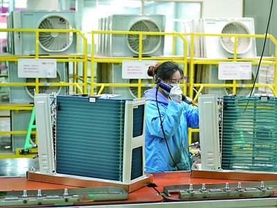 格力电器(南京)有限公司的一名员工在岗位上忙碌。新华社发