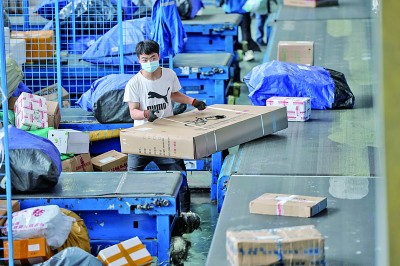 贵州快递物流集聚区是西南地区最大的快递物流集散中心之一,贵州90%的包裹都在此地集散,无数“黔货出山”的包裹由此发往全国。目前,园区日均进出港快件分拣处理量400万票(件)以上。图为6月6日,工作人员在集聚区内分拣快递。新华社记者 欧东衢/摄