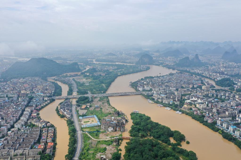这是6月22日拍摄的漓江桂林城区段(无人机照片)。新华社记者曹祎铭 摄