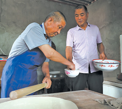 谢来成(右)与鲁忠胜一起做午饭。 |