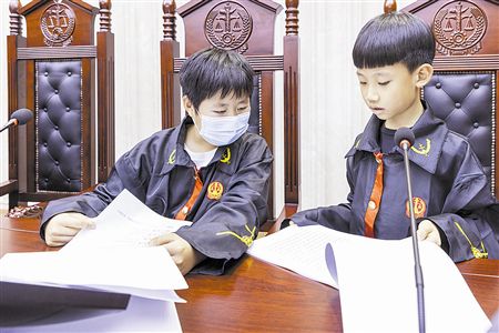 跟随少年审判庭讲解员的引导,孩子们相继参观体验安检入口、立案诉讼服务大厅、执行指挥中心、法庭等场所设施,全面了解从起诉立案到案件审理再到宣判执行的诉讼过程。随着清脆的法槌声,一场以故意伤害案件审判为主题的模拟法庭活动把整个体验活动推向高潮。