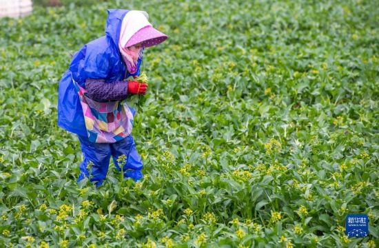 12月4日,在湖南省永州市道县清塘镇室家村,村民在蔬菜基地采摘蔬菜。