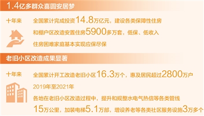 今年前10月,全国新开工改造城镇老旧小区5.21万个、859.25万户。“十四五”时期,我国将基本完成2000年底前建成的、约21.9万个城镇老旧小区的改造任务。