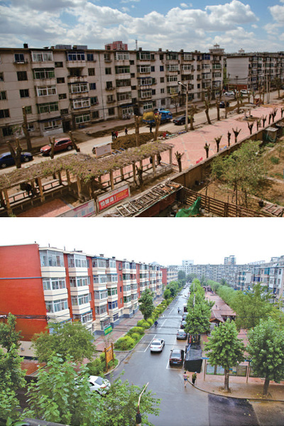 辽宁省沈阳市皇姑区三台子牡丹社区。上图为改造前的小区面貌,下图为改造后的小区环境。 |